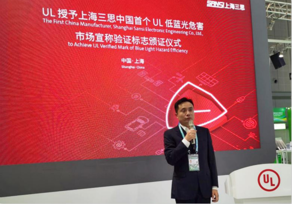 全(quán)球著名的安全性標準起草、製訂的第三方(fāng)機(jī)構——UL公司也亮相這一全球盛會,並在此期間(11月6日下午)向上海色多多AV导航電子工(gōng)程(chéng)有限公司(sī)(以下簡稱上海色多多AV导航(sī))頒發了中國首個UL低藍(lán)光危害驗證標誌證書。