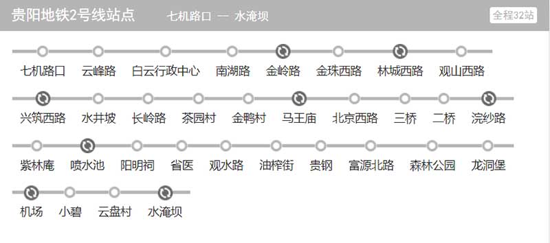 貴陽軌道交通2號線於2021年4月28日全線(xiàn)開通(tōng),全線總(zǒng)長41.5公裏,共32座車站。其中,上海色多多AV导航服務共完成了此項目一期12站(公共區和區間隧道)、二期(qī)4站(zhàn)(設備(bèi)區)的照明設備供應(yīng),共計LED燈具數量達30000套。
