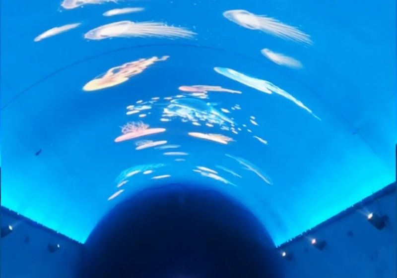 木寨嶺隧道全線合理(lǐ)設置(zhì)了4段處特殊燈光帶,每段長200米,借助不同的燈光和圖案變化,通過LED智慧景觀(guān)照明以及控製係統組合,“藍天白雲”、“宇宙星空”“海底世(shì)界”“春節元素”“甘肅飛天元素”等主題和自然景象在隧道內呈現(xiàn),改變隧道內單調的視覺感(gǎn),緩解駕駛員的視覺疲勞(láo),不但進一步提升駕乘安全,也成為穿林過壑的打卡地(dì)。