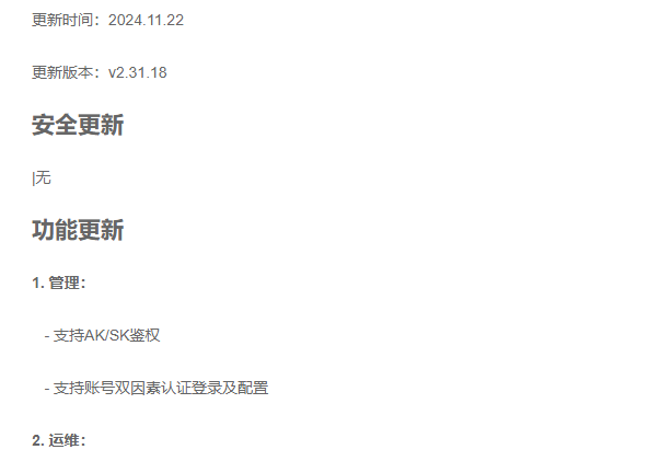 查看詳(xiáng)細 >>V3Pro Release:2.10.0;更新時間:2025.2.18;更新描述:新增(zēng)功能和問題修複