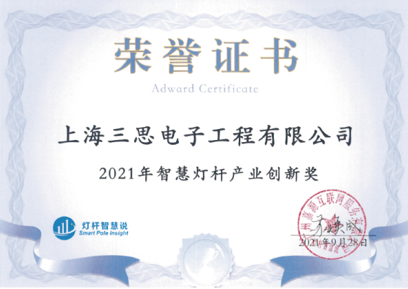 查(chá)看詳細 >>2021年中國(guó)國際信息通信展暨5G+智慧燈(dēng)杆融合發(fā)展論(lùn)壇在(zài)北(běi)京國際會議中心隆(lóng)重召開!邀請了智慧燈杆產業相關領域的知名專家、頭部企業、政府及各地相關單位領導,並與行業知名專家共(gòng)同就智慧燈杆建設運營、跨界融合、模式(shì)創新等(děng)問題(tí)進行深(shēn)度探討。第三屆智(zhì)慧燈杆產業大獎”2021年智慧燈杆產業創(chuàng)新獎”該獎項是對深(shēn)耕智慧路燈行業多年企業的肯定和鼓舞,也是對我司在智慧燈杆產業(yè)中起到的創新帶頭(tóu)作用的褒獎。