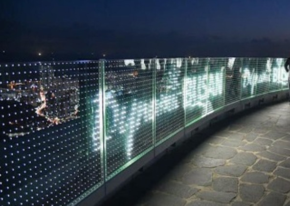 LED光(guāng)電玻璃屏主(zhǔ)要由內層導電玻璃、LED芯片光源、外層玻璃三部分組成。除有LED燈珠外,無(wú)任何(hé)其(qí)他元器件,電路板完全透明,既保持(chí)了玻璃超(chāo)高透特性,又能通過光電軟件控製來呈(chéng)現顯示效果(guǒ),從而實現圖(tú)文(wén)顯示及視頻播放。