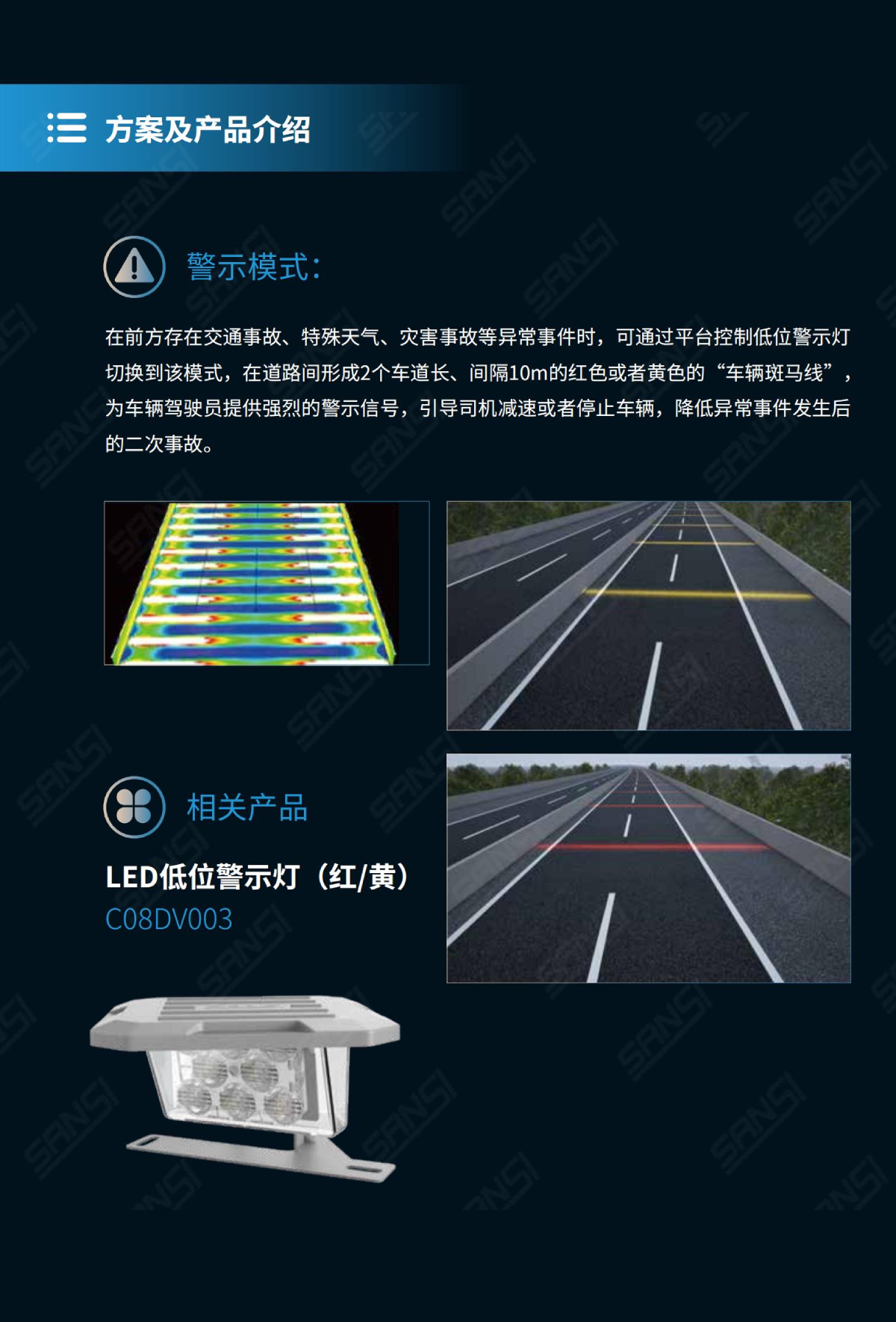 二合一(yī)燈具方案,通過集中控製箱和平台可遠(yuǎn)程手動/自動(dòng)的控製(zhì)照明燈的亮滅及誘導(dǎo)燈的閃爍頻率,提供清晰的視線引導。燈具采用獨特設計和配光技術,避免眩光幹(gàn)擾,減少(shǎo)視覺疲勞(láo),同時確保路麵照(zhào)明(míng)均勻,消除斑馬線現象,保障行車安全。