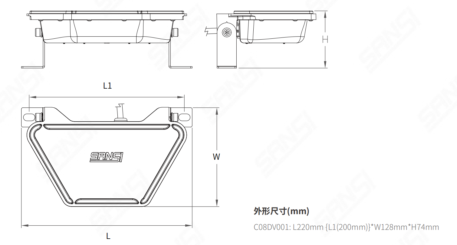 • ADC12壓鑄鋁(lǚ)燈體,一體(tǐ)式結構,PC出光麵罩,IP66防護等級抗鹽霧(wù)耐腐蝕
