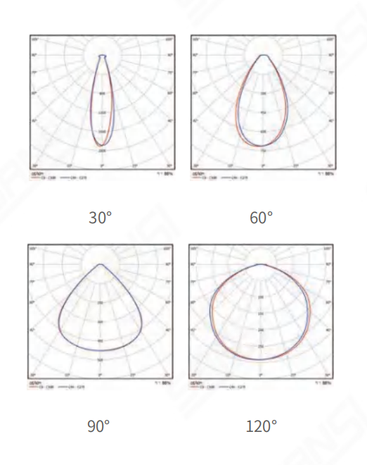 • 多角度透鏡光學設計,光學分布(bù)精準,能合理提高光的利用率