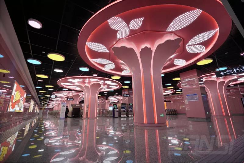 以(yǐ)錢湖南路站為(wéi)例,該站以“繁花綻放”為主題,支柱造型設計為寧波市市花山茶(chá)花,寓意莘莘學子活力四射的精神(shén)麵貌。三(sān)思發揮強大的定製能力(lì),打造舒適而又富有特色的LED照明環境,造型獨(dú)特(tè)的異形燈在起到照明作用的同時,又很好(hǎo)地改善(shàn)了地下空間(jiān)原本沉悶的氛圍,增加了許多趣味性(xìng)和藝術性(xìng),讓整個空間變得更加明(míng)亮又浪漫。